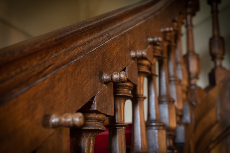 Sur le limon de départ, sont fixés des pitons de bois tournés, lesquels servaient de porte-manteau.