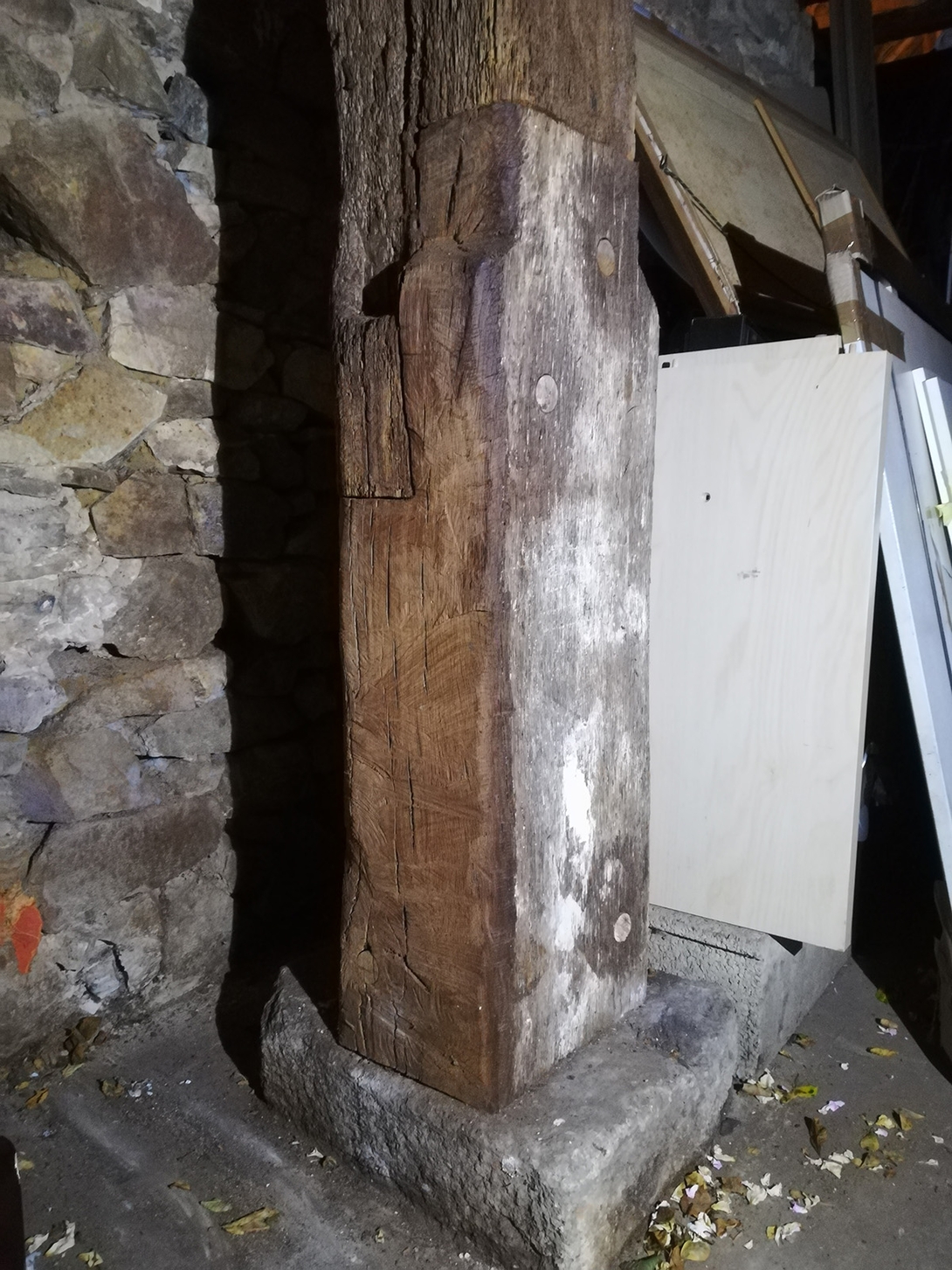 En 1638, on renouvelle la charpente du reste du bâtiment ; le contreventement est assuré par des croix de Saint-André reliant faîtière et sous-faîtière;