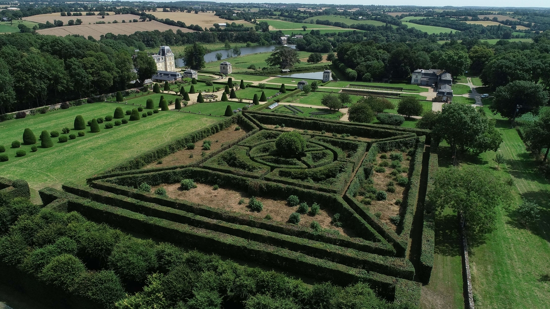 Le carré situé le plus haut dans le jardin est une vaste charmille carrée ;