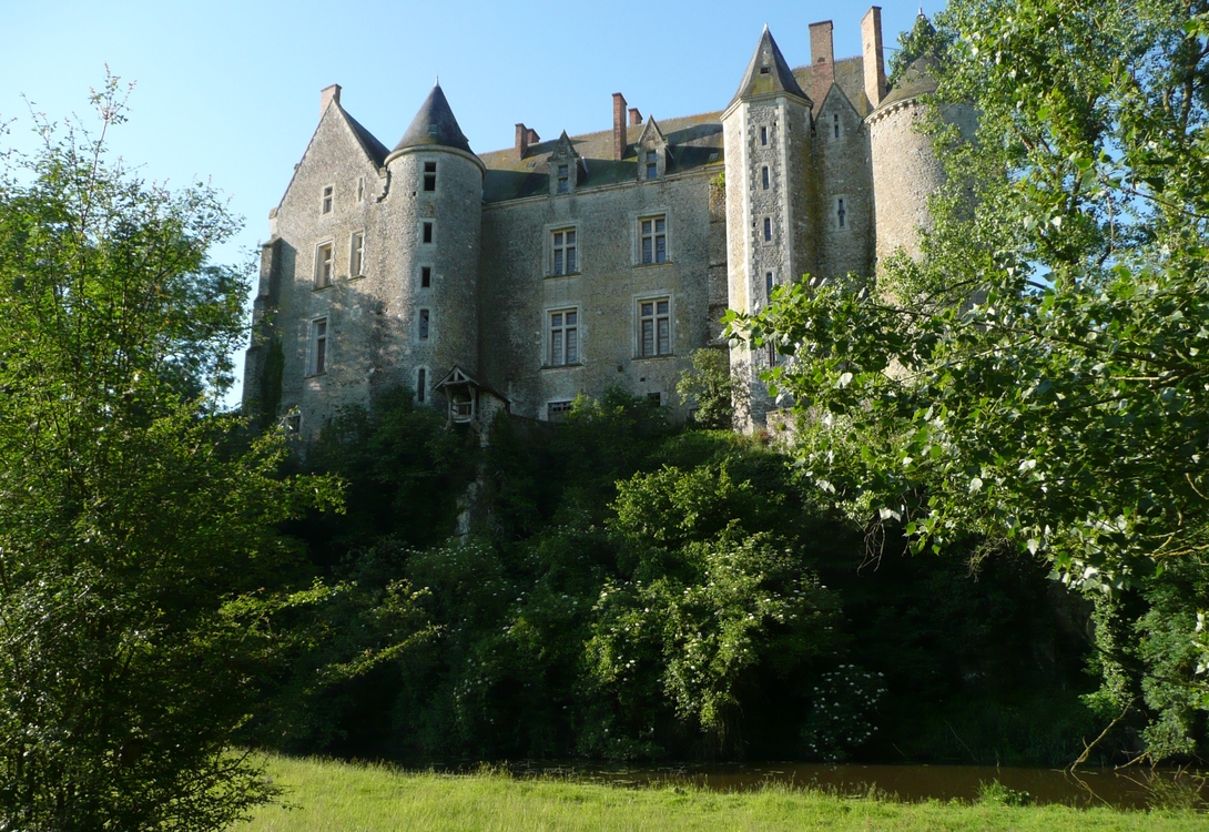 En 1860, Léon de Lorière entreprend de restaurer le château en le remaniant complètement. La façade sud, devant laquelle vous êtes, est reconstruite dans le style de la Renaissance. De larges vestiges des anciennes constructions sont cependant conservés, telle la grosse tour ronde à l’arrière. Un historien de l’époque qualifia ainsi le château restauré de « Pierrefonds du Bas-Maine » !