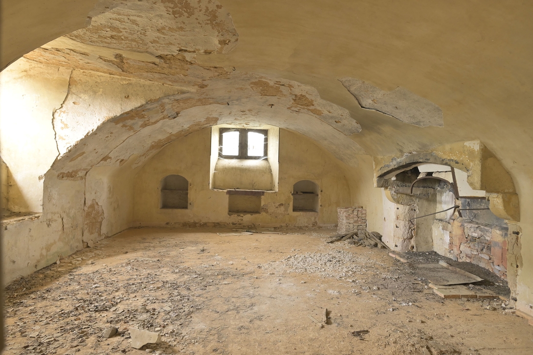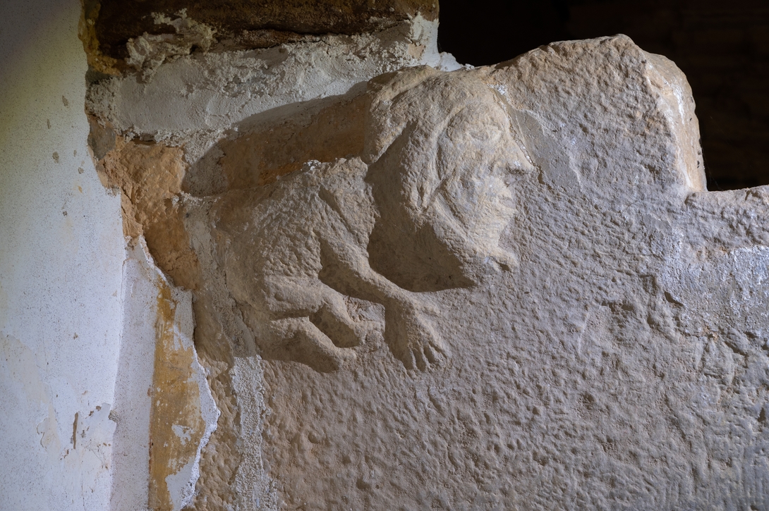 De la construction du XIIe-XIIe siècle subsistent ainsi diverses parties en sous-sol et un large pan de mur avec une partie en roussard (pierre marron-rouille) au levant.