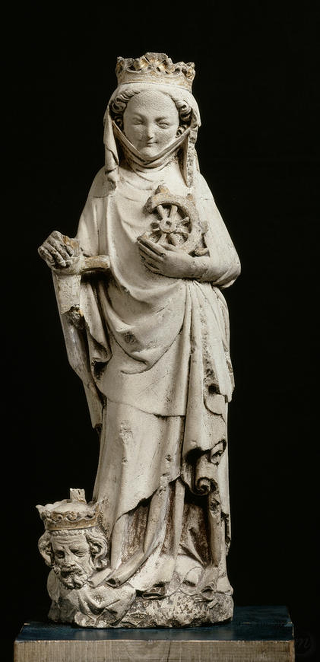 Selon la « La Légende dorée » de Jacques de Voragine (XIIIe siècle), sainte Catherine d’Alexandrie aurait vécu au début du IVe siècle, en Égypte. Fille de roi, elle reçoit une éducation soignée et fait l’admiration de tous par son intelligence et sa beauté. Un jour, elle voit des chrétiens se faire massacrer et va trouver l’empereur Maxence pour tenter de le convaincre de l’existence du dieu des chrétiens. Constatant qu'il ne pourrait trouver de parade à la sagesse de Catherine, ce dernier convoque à Alexandrie une cinquantaine de savants auxquels il promet « d’immenses récompenses s'ils triomphaient par leurs raisonnements de la vierge argumentatrice ». Mais, alors que l’empereur doit s’absenter, elle parvient à convertir la docte assemblée ainsi que la propre épouse de Maxence ! Fou de rage, il la condamne au supplice de la roue dont elle réchappe par miracle. Elle sera finalement décapitée, du lait jaillissant de son cou en guise de sang.