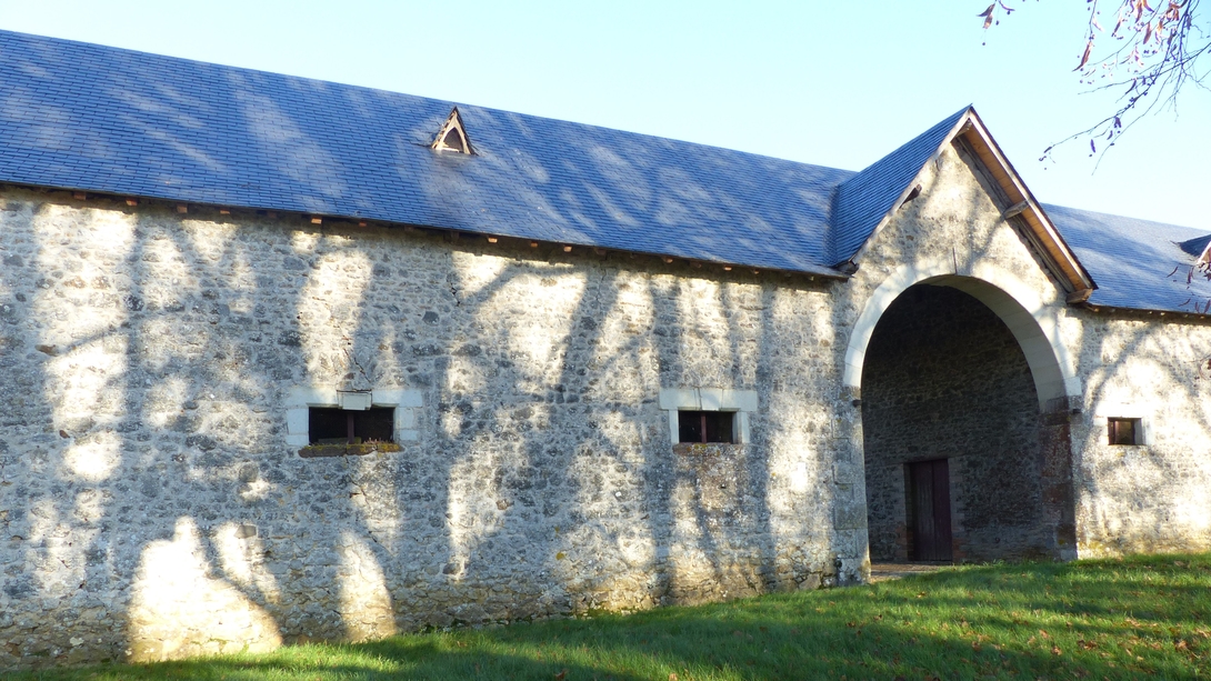 Ce bâtiment ancien, dépendant de l’ancienne ferme du domaine, est traversé par un porche par lequel on entrait autrefois dans l’enceinte du château. Entièrement rénové au XIXe siècle, on y remarque une juxtaposition d’appareillages, ainsi que des évents (ouverture triangulaire sur le toit, appelée aussi « outeau », servant à la ventilation) antérieurs à la rénovation. Subsiste également au pignon ouest, une porte en plein cintre (partiellement bouchée) datant du XVIe siècle, peut-être du XVe siècle.