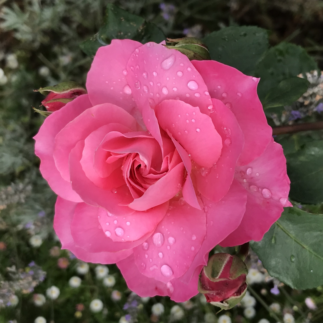 Non loin de l’ile, une allée étroite serpente entre les rhododendrons, les spirées et les lauriers du Portugal et mène à une petite roseraie, secrète et à l’écart du monde, qui s’intègre dans la nature environnante ; Annoncée par les parfums mêlés des roses et des lavandes, elle charme par ses couleurs douces. Les chants des oiseaux et le murmure de l’eau invitent au rêve et à la poésie …